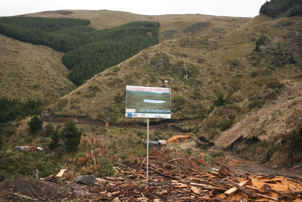 Para el Estado ecuatoriano todo el territorio nacional es susceptible de ser explotado. No solo se trata de la XI Ronda petrolera o el inicio de la megaminería en el país: las plantaciones forestales son otra apuesta decidida del Estado para acelerar la circulación de capital a través de acumulación por despojo. Se trata de apropiarse de territorios como el páramo, que han mantenido hasta la actualidad los usos y manejo comunitario, como ecosistema que provee de agua a las comunidades que viven bajo el páramo, pero también a buena parte del país.