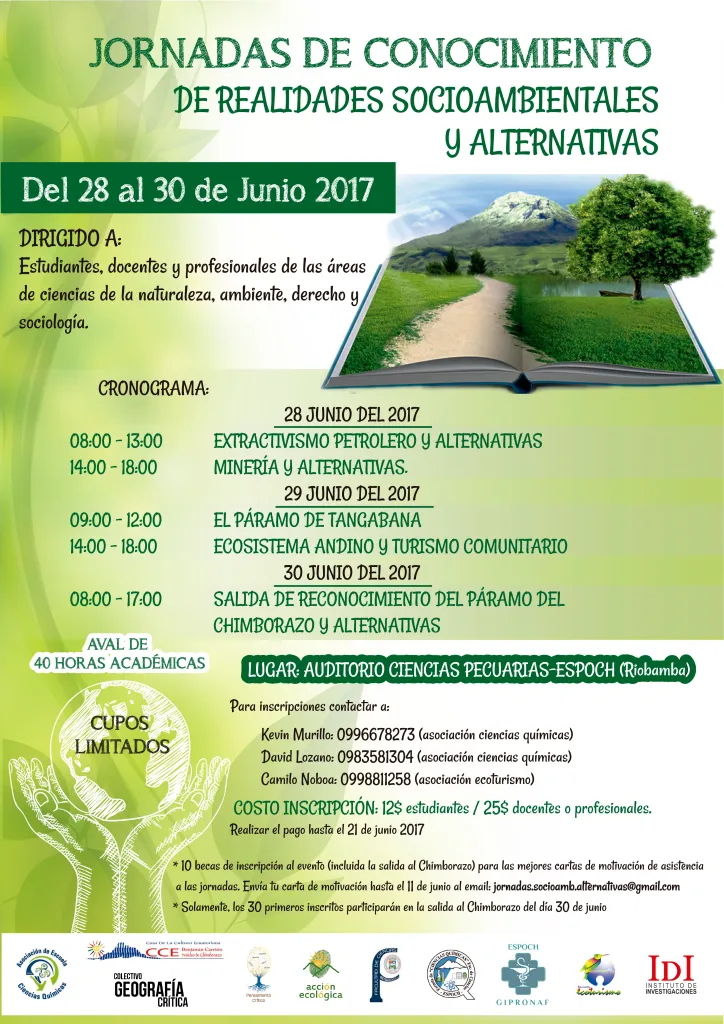 El colectivo participa con tres ponencias en las “Jornadas de conocimiento de realidades socioambientales y alternativas” que se celebrarán en la ESPOCH de Riobamba entre el 27 y el 29 de junio.