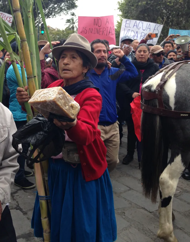 Durante el taller recogimos varios testimonios sobre las afectaciones ambientales y sociales y de género que ya se están sintiendo en la zona. Esta información sirvió para preparar un Amicus curiae en apoyo a la población local, para que se ratifique la Acción de protección durante la audiencia de apelación del 23 de julio pasado. El nuestro fue uno de los 17 Amicus Curiae presentados por diversas organizaciones, lo que evidencia el interés de la sociedad organizada en este conflicto. Ese día, un fuerte contingente policial rodeó la Corte provincial para protegerla de los pobladores locales que llegaron con plantas de caña, panela, ovejas, caballos y mulas que representan la vida campesina que está en peligro.