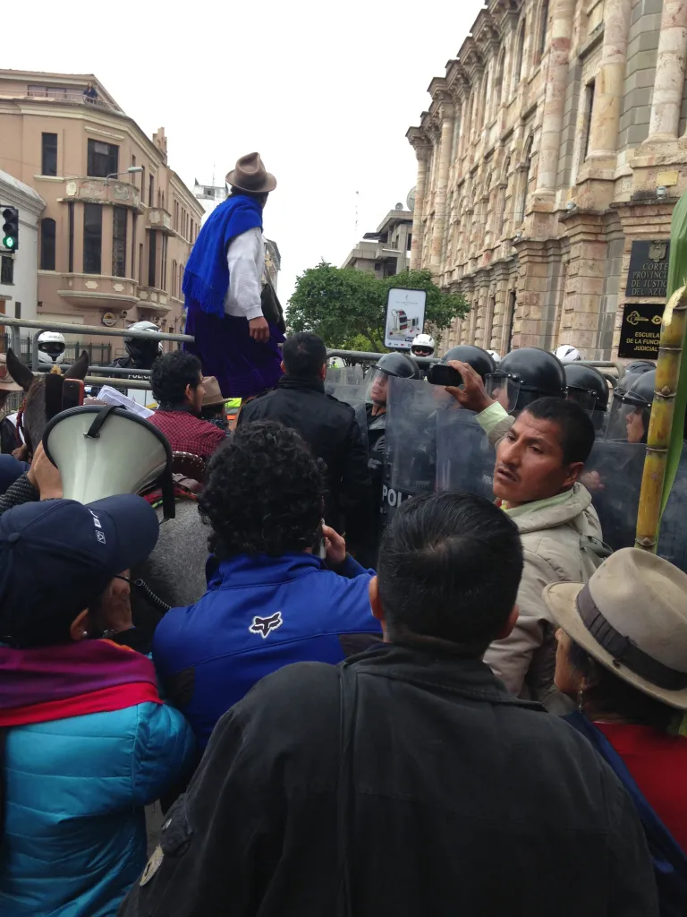 El pasado 23 de julio tuvo lugar en la Corte Provincial de Justicia del Azuay, en Cuenca la audiencia de apelación a la Acción Constitucional de Protección que otorgó el juez Dr. Paúl Serrano Arízaga el 1 de junio pasado a favor de la población afectada por el proyecto minero en Río Blanco. La resolución del juez ordenó que se suspenda la acción de explotación en el sector de Río Blanco, la desmilitarización gradual y paulatina de los sectores en conflicto, precautelando la integridad de los miembros de la comunidad y evitando sobre todo conflictos y que se realice el debido proceso de la consulta previa.