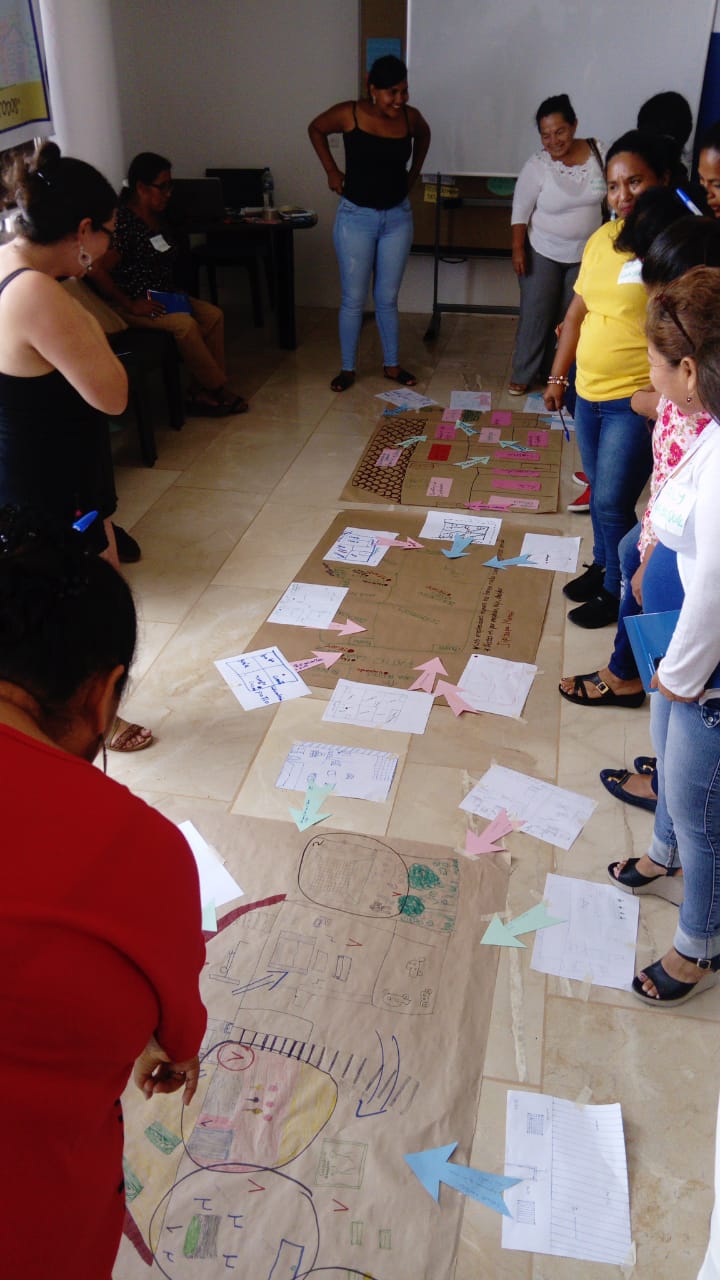 En esta ocasión, con el apoyo de FES-ILDIS y conjuntamente con las organizaciones de mujeres trabajadoras remuneradas del hogar, se realizó una reflexión a partir del mapeo colectivo del lugar de trabajo, para espacializar la violencia y acoso, transversalizando reflexiones sobre el tema de clase social y racialización. El objetivo del taller fue aportar a la reflexión sobre la importancia de la organización y lucha contra la violencia ejercida sobre las mujeres en sus lugares de trabajo. Se localizaron los espacios de alta vulnerabilidad frente a sus derechos como mujeres como espacios donde se ejercen diferentes tipos de violencia: explotación, acoso laboral, abuso sexual, abuso físico, intimidación y violencia psicológica.