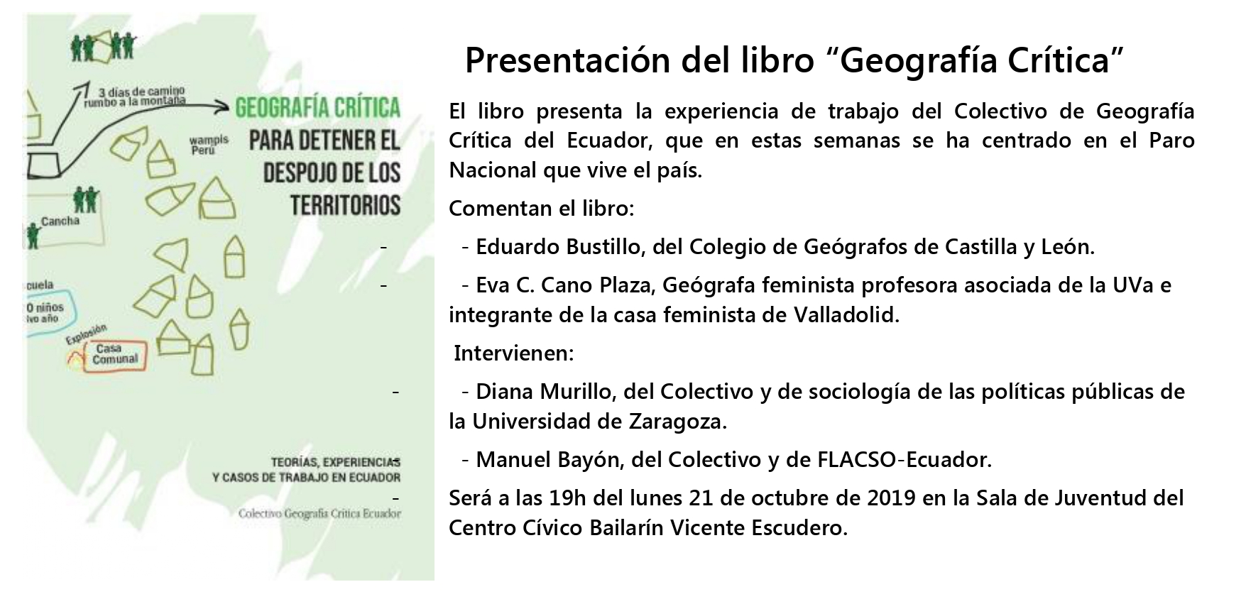En octubre, se presentará en Valladolid, España, junto con el Colegio de Geógrafos de Castilla y León, a cargo de Diana Murillo y Manuel Bayón.