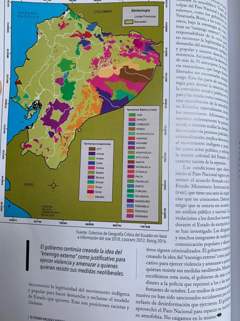 “Durante los 11 días que duró el Paro Nacional el gobierno de Lenín Moreno utilizó una fuerza desproporcionada contra la población que se manifestaba, justificada por el Estado de Excepción decretado apenas unas horas después de iniciado el Paro. En esta situación extraordinaria, que eliminó el estado de derecho, las fuerzas armadas y a la policía nacional fueron movilizadas para ocupar todo el territorio nacional. Además, quedó suspendido el derecho de asociación, y se limitó el derecho de libre tránsito. Afirmamos que el estado ecuatoriano es violento y racista, siempre lo hemos sabido, y en los días del Paro Nacional esto se constató de varias formas.”