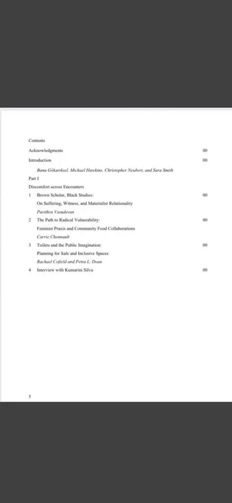 Compartimos este libro próximo a publicarse con West Virginia Press titulado Feminist Geography Unbound. Discomfort, bodies and prefigured futures editado por Banu Gokariksel, Michael Hawkins, Christopher Neubert y Sara Smith. Publican varias geógrafas feministas, incluido nuestra compañera, Sofia Zaragocin.