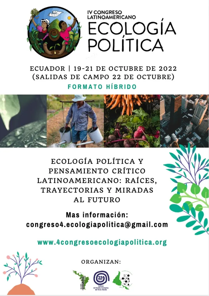 El Colectivo de Geografía Crítica del Ecuador, el Instituto de Estudios Ecologistas del Tercer Mundo, con el apoyo del Grupo de Trabajo Ecología(s) política(s) desde el Sur/Abya-Yala de CLACSO invitan a la comunidad académica y a los movimientos sociales a participar en el IV Congreso Latinoamericano de Ecología Política.
