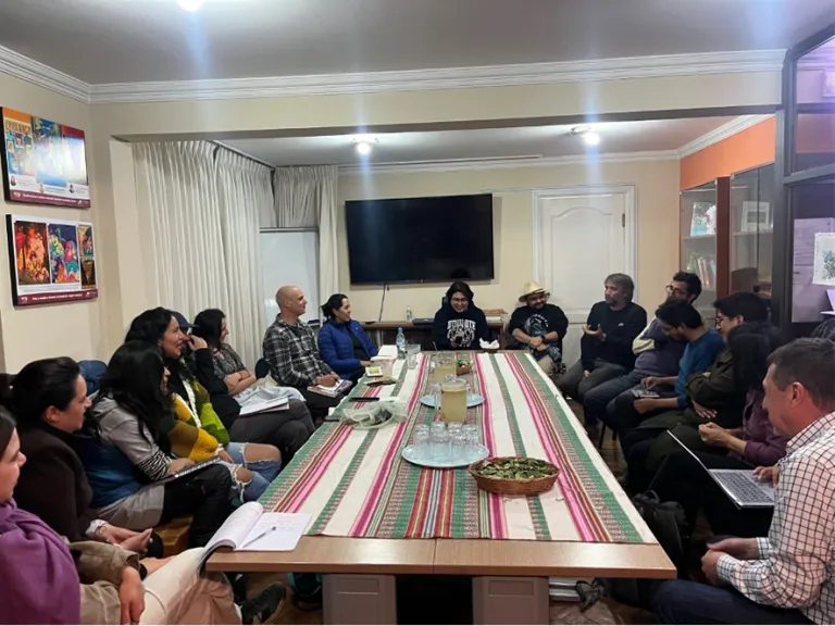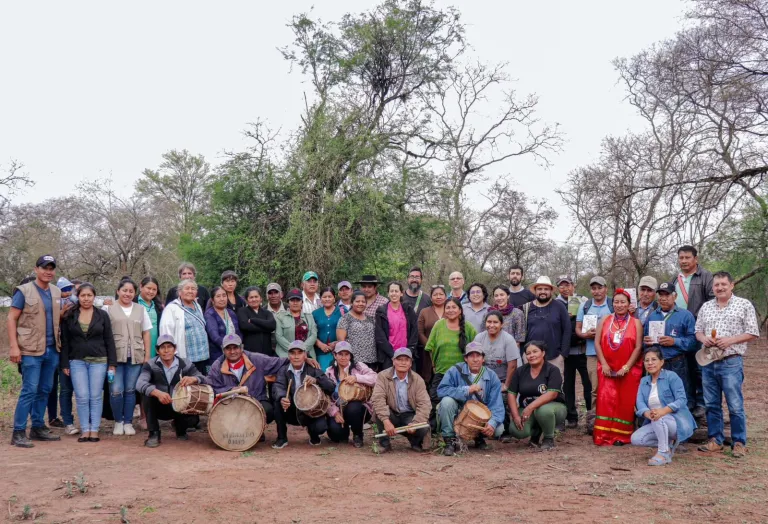 En el marco del Encuentro se realizaron visitas de campo a los municipios de Palca, Macharetí y Santa Rosa, esta última perteneciente al Territorio Autónomo Indígena Guaraní Chaqueño de Huacaya. En Palca, participamos en la visita a la comunidad de Retamani donde pudimos conocer la montaña sagrada de Chut’u Qollo y la historia ancestral de las “Illas”, sus elementos culturales y espirituales clave para la ancestralidad de este territorio. En el territorio chaqueño boliviano, visitamos a la comunidad de Isipotindi donde apreciamos una demostración de la cultura guaraní y chaqueña, y la exposición de los procesos de acceso y gestión territorial en el Chaco por parte de las autoridades guaraníes. Finalmente, visitamos a la comunidad de Santa Rosa, donde conocimos la Escuela de Tejedoras Textiles Guaraníes y las instalaciones que anteriormente pertenecieron a una misión de la Iglesia.