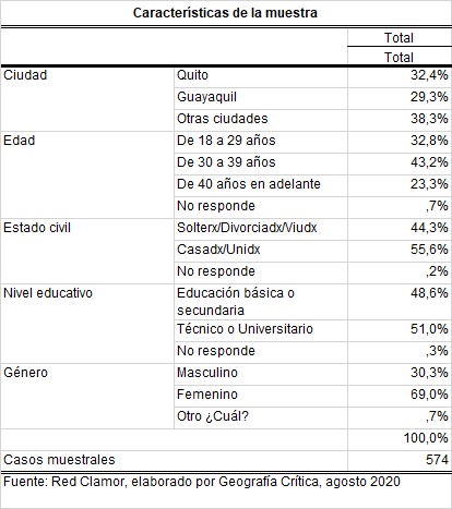 [5] Las personas encuestas en Azuay, Carchi, Chimborazo, El Oro, Esmeraldas, Imbabura, Manabí, Orellana, Santa Elena, Sucumbíos y Tungurahua representan al 38,3% por lo que se analizan como un solo dominio geográfico.
