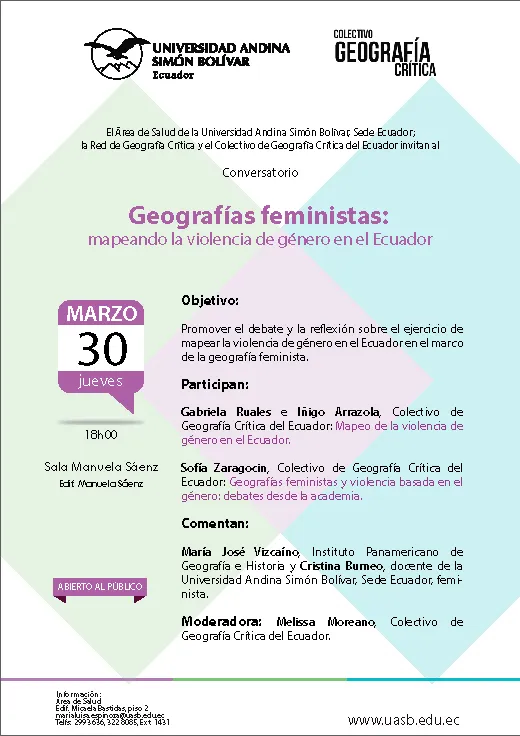 Evento Conversatorio “Geografías feministas: mapeando la violencia de género en el Ecuador” Ver más marzo 23, 2017