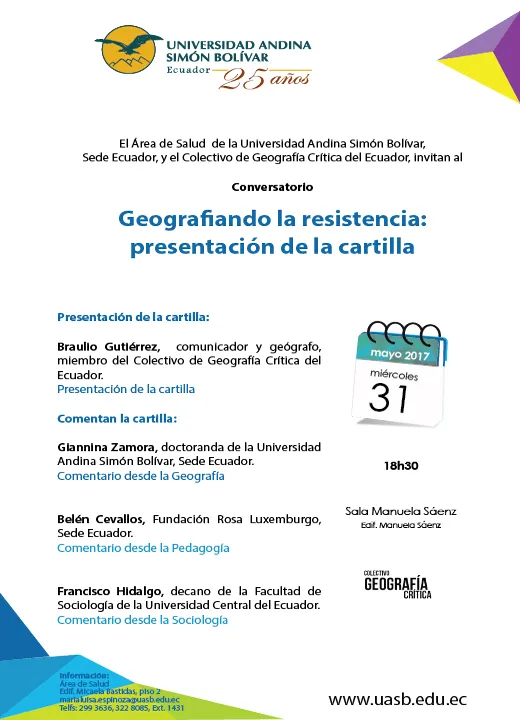 Evento Jornadas sobre geografía crítica en diferentes universidades del Ecuador Ver más julio 15, 2017