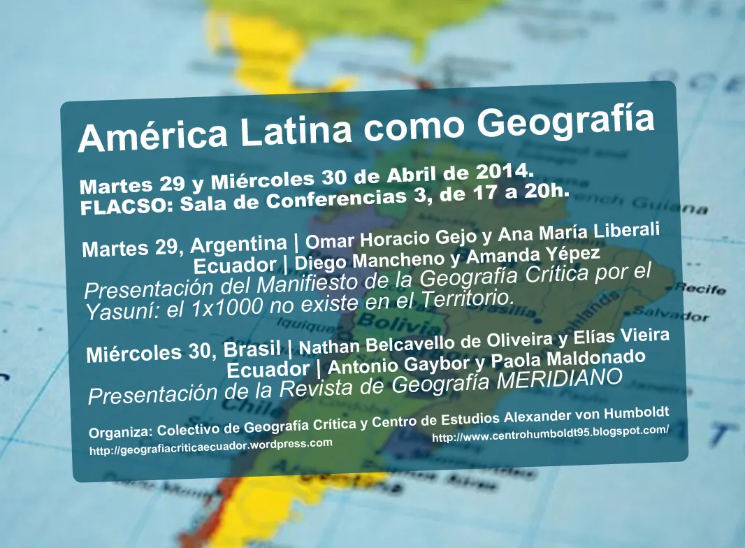 Evento Jornadas sobre geografía crítica en diferentes universidades del Ecuador Ver más julio 15, 2017