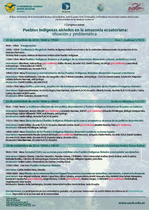 Evento I Congreso sobre pueblos indígenas aislados en la amazonía ecuatoriana Ver más noviembre 2, 2016