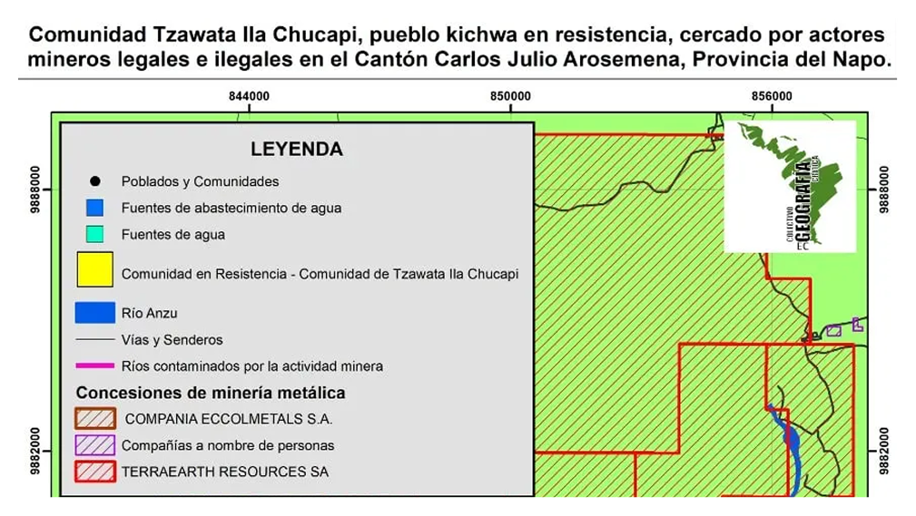 Sin embargo, como vimos, la territorialización minera estatal y empresarial por creciente demanda global de minerales ha crecido ampliamente en los últimos años y los gobiernos tanto nacional como locales no han actuado en consecuencia. En cambio, se ha evidenciado vínculos entre las empresas que tienen concesiones legales como Terraearth Resource S.A. con operadores externos y locales incluyendo autoridades, que realizan actividades al margen de la legalidad.